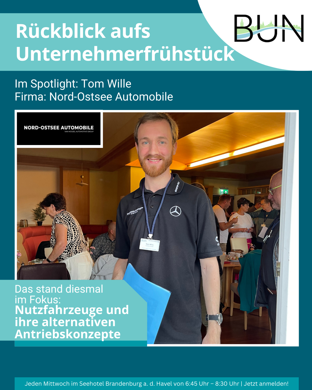 Im Spotlight erzählte uns Tom seinen Weg bei der Nordostsee Automobile, bei denen er seit 3 Jahren in Brandenburg als gebürtiger Hamburger arbeitet. Seine Firma hat die Jürgens Gruppe übernommen. Tom ist zertifizierter Verkaufsberater und die Elektrobranche bietet momentan sehr gute Konditionen beim Kauf eines Fahrzeuges an. Mercedes will den Absatz seiner Modelle im Herbst noch einmal ankurbeln. Sind wir also gespannt, was kommt. Danke Tom für den Einblick, den du uns zu deinen Nutzfahrzeugen gegeben hast.